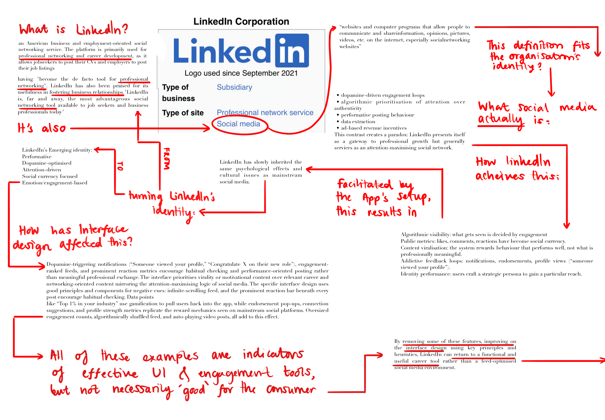 LinkedIn presents itself as a gateway to professional growth but generally services as an attention-maximising social network, and much of this is enabled by the Interface systems used. LinkedIn, much like many other platforms use effective UI and engagement tools, but they aren't necessarily 'positive' for the consumer.